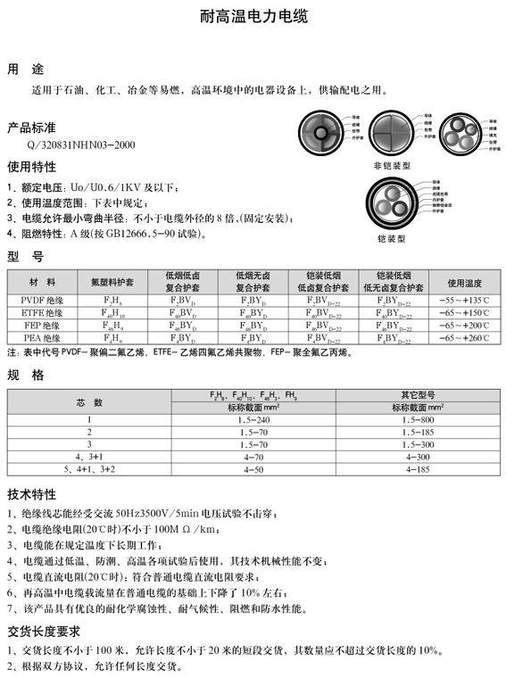 耐高溫電力電纜
