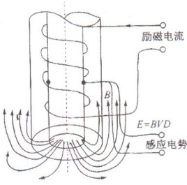 插入式電磁流量計工作原理圖解 插入式電磁流量計原理與管道式電磁流量計一樣也是基于法拉第電磁感應定律。當導電液體以平均流速V且垂直于磁場強度為B磁力線方向通過距離為L的兩電極時,在電極間就產生相對的電動勢E,法拉第電磁感應定律為: