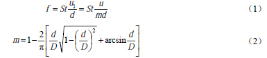 1.引言 渦街流量計(或稱旋渦流量計)是一種基于流體振蕩原理的新型速度式流量儀表。它的輸出信號是與流量成正比的脈沖頻率信號或標準電流信號,可遠距離傳輸,并且輸出信號僅與流量有關,不受流體的溫度、壓力、成分、粘度和密度的影響。它具有量程比寬,結構簡單,無運動件,檢測元件不接觸被測流體,具有測量精度好、應用范圍廣、使用壽命長等特點。因此,渦街流量計自20世紀60年代末誕生以來,發展異常迅速,許多研究者進行了大量的工作,開發出了眾多類型的渦街流量計,并大量生產投放市場,像這樣在短短幾年時間內就達到從實驗室樣機到批量生產過程的流量計還是僅有的。 然而,在經歷了20世紀80~90年代的“渦街熱”以后,渦街流量計的發展放慢了步伐。由于對這種新型儀表的生產、設計、選型和應用方面的經驗不足,面對各行各業千差萬別的現場和測量對象,有些問題逐步暴露出來,如安裝條件和方式對測量的影響等。對于安裝條件(即各種使用條件下所必須的直管段長度)的要求,不同儀表廠家都會給出一個比較合理的建議值。但是,對于安裝方式(即流量計水平安裝或垂直安裝)給渦街流量計造成的影響,一般都沒有涉及。本文通過相同條件下的實驗研究,定量地討論和比較了水平、垂直兩種安裝方式對渦街流量計測量的影響。 2.渦街流量計測量原理 在流體中垂直于流向插入一根非流線型柱狀物體(即旋渦發生體),當流速大于一定值時,在柱狀物兩側將產生兩排旋轉方向相反、交替出現的非對稱的旋渦列(即卡門渦街),如圖1所示,通過檢測渦街產生的頻率,根據有關的關系式得到流體的流量。 設旋渦的發生頻率為f,被測介質來流的平均速度為u,旋渦發生體迎面寬度為d,管道內徑為D,根據卡門渦街原理,有如下關系式: 式中u1為旋渦發生體兩側的平均流速,m/s;St為斯特勞哈爾數,量綱為1;m為旋渦發生體兩側弓形面積與管道橫截面面積之比,量綱為1。 管道內流體的體積流量qv為: 式中K為渦街流量計的儀表系數,Hz/(m3/h)。 式(3)就是渦街流量計測量的基本關系式,其中K除與旋渦發生體、管道的幾何尺寸有關外,還與斯特勞哈爾數有關。斯特勞哈爾數為無量綱參數,它與旋渦發生體形狀及雷諾數有關,在ReD = 2×104 ~ 7×106范圍內,St可視為常數,這是儀表正常工作范圍。同時可以看到,渦街流量計輸出的脈沖頻率信號不受流體物性和組分變化的影響,即儀表系數在一定雷諾數范圍內僅與旋渦發生體及管道的形狀尺寸等有關。 3. 渦街流量計的安裝方式 在工程實際應用中,渦街流量計通常有如圖2所示的幾種安裝方式[10],其中(a)、(b)、(c)三種方式都屬于水平安裝;(d)則為渦街流量計的垂直安裝。對不同的流體應采用不同的安裝方式。普通液體、氣體、含水量液體的氣體、低溫氣體和液體、含微量固體顆粒的液體和氣體等可采用(a)、(c)、(d)方式安裝;高溫液體、高溫氣體、蒸汽可采用(b)、(c)、(d)方式安裝;濕飽和蒸汽可采用(a)、(c)、(d)方式安裝;液-氣(含微量氣體)、液-固(含微量固體)和液-液兩項流中,如果氣、固相不超出可測量范圍,建議首先采用(d)方式安裝。 4. 實驗及結果討論 4.1 實驗裝置與過程 實驗裝置結構如圖3所示,水穩壓罐為管路提供恒定的水壓,使實驗時流量穩定,水流量的大小由調節閥來調節,流量范圍為2~20 m3/h。電磁流量計作為標準流量表給出進入實驗段的水的標準流量值,精度為0.5%。渦街流量計分別按照水平和垂直兩種方式安裝在實驗管路中,它們都具有足夠長的前、后直管段長度,并且其它安裝條件都嚴格按照規定的要求。渦街流量計的信號通過示波器采集,采樣頻率選用1000 Hz,每組數據包含2500點。 4. 2 實驗結果與分析 分別對在水平和垂直兩種安裝方式時測得的渦街信號進行快速傅里葉變換(FFT),可以得到渦街頻率值,圖4給出了渦街頻率與流量之間的關系。從圖中可以看出,兩者之間的差別很小。再分別對測得的渦街率與流量做零截距最小二乘擬合,得到水平、垂直安裝的渦街流量計儀表系數分別為2.5202 Hz/(m3/h)和2.5198 Hz/(m3/h),相對誤差小于0.02%?梢,在安裝方式對渦街流量計的測量影響很小,可以忽略。 為了進一步研究渦街流量計安裝方式的影響,本文還比較了在水平和垂直兩種方式下的渦街信號的幅度。圖5給出了渦街信號幅度與流量之間的關系,可以看出信號幅度都與流量成近似二次方關系,在相同流量下,信號幅度基本上相等,這說明渦街流量計安裝方式對其信號幅度影響很小,也即旋渦的能量(正比于幅度的平方)幾乎不受影響。但是,仔細比較可以發現,渦街流量計水平安裝時的信號幅度略大于垂直安裝的情況,這里可定性地理解為,當渦街流量計垂直安裝時部分旋渦能量因為克服重力而耗散,使得渦街流量計傳感器感測到的渦街能量變少,從而造成信號幅度減小。