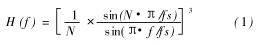 當流體流速較小時, 工頻干擾信號與有效流量信號在同一數量級, 嚴重影響測量結果。已知工頻耦合噪聲基波頻率為 50 Hz , 因此可以采用模擬或數字濾波器使濾波器帶寬限制在 50 Hz以內以抑制噪聲。在實際應用中使用 Sigma Delta模數轉換器 AD7714內部包含的數字濾波模塊, 數字濾波器相對模擬濾波器除具有靈活性高、參數設置方便等特點之外,還可以降低 A /D 轉換期間引入的噪聲。AD7714數字濾波器為 ( sinx /x )3低通濾波器, 其在頻域的傳遞函數為: