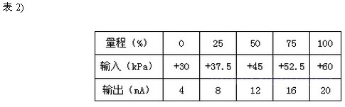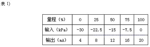 調校時,正壓室接輸入信號,負壓室通大氣。假設儀表量程仍為30kPa,遷移量ρgh=30kPa。 輸入與輸出的關系見表2)。