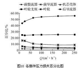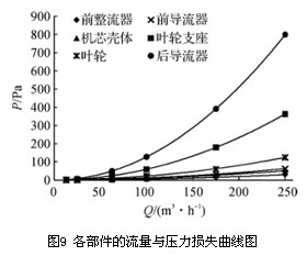 在天然氣的采集、處理、儲存、運輸和分配過程中,需要數以百萬計的流量計,它既是天然氣供需雙方貿易結算的依據,也是生產部門用氣效率的主要技術指標,因此對流量計測量準確度和可靠性有很高的要求。 氣體渦輪流量計屬于速度式流量計,是應用于燃氣貿易計量的三大流量儀表之一。由于具有重復性好、量程范圍寬、適應性強、精度高、對流量變化反應靈敏、輸出脈沖信號、復現性好和體積小等特點,氣體渦輪流量計近年來已在石油、化工和天然氣等領域獲得廣泛的應用。 隨著渦輪流量計在管道計量領域的廣泛使用,天然氣管道輸送過程中的能耗成為不容忽視的問題,而天然氣管道輸送過程中的壓力損失是產生能源消耗的主要原因之一。為保證天然氣能順利輸送至用戶端,就需要提高各壓氣站的輸送壓力并盡量減少管道輸送過程中的壓力損失,而各級管道上的計量流量計所造成的壓力損失占有很大比重。因此,氣體渦輪流量計的壓力損失研究對節能減排和推動我國燃氣計量儀表產業的發展具有較好的推動作用。 近年來,越來越多的學者采用數值模擬仿真方法對渦輪流量計進行研究,如XU、LIU、 等學者均通過數值計算形式模擬流量計內部流動,并與實驗比較驗證了模擬結果的正確性。應用S-A、標準k-ε、RNGk-ε、Realizable k-ε和標準k-ω這5種湍流模型對渦輪流量計進行三維數值模擬,并將應用各湍流模型得出的仿真儀表系數與實流標定值進行對比和分析,這對數值模擬計算選取湍流模型給出了一定參考。 目前,渦輪流量計的優化主要通過改良其導流件、葉輪、軸承、非磁電信號檢出器等部件的結構尺寸和加工工藝,來改善流量計測量氣體、高粘度流體和小流量時的特性。對降低渦輪流量傳感器粘度變化敏感度進行了研究。SUN等采用了Standard k-ε湍流模型數值模擬口徑為15mm的渦輪流量計的內部流動,結果表明壓力損失受到前端和后端形狀、導流體半徑、導流體的導流片和渦輪葉片厚度的影響.雖然對氣體渦輪流量計的流動進行實驗測量和數值計算,發現前導流器的結構變化對后面各部件內的氣體流動速度梯度和壓力恢復也有明顯影響,使總壓力損失進一步放大或減小,但對流量計的其它部件未進行分析。本文將對一種型號氣體渦輪流量計各部件的壓力損失與流量的關系進行分析研究,以提出其優化思路。 1 渦輪流量計的基本結構及工作原理 本文采用80mm口徑氣體渦輪流量計作為研究對象,對其進行內部流道的壓力損失數值模擬。 氣體渦輪流量計結構示意圖如圖1。氣體渦輪流量計實物如圖2,其中圖2(a)為渦輪流量計實物圖,圖2(b)為渦輪流量計機芯葉輪實物圖。 氣體渦輪流量計的原理是,氣體流過流量計推動渦輪葉片旋轉,利用置于流體中的葉輪的旋轉角速度與流體流速成比例的關系,通過測量葉輪轉速來得到流體流速,進而得到管道內的流量值。渦輪流量計輸出的脈沖頻率f與所測體積流量qv成正比,即 式(1)中:k—流量計的儀表系數。 根據運動定律可以寫出葉輪的運動方程為 式(2)中:J—葉輪的轉動慣量;t—時間;ω—葉輪的轉速;Tr—推動力矩;Trm—機械摩擦阻力矩;Trf—流動阻力矩;Tre—電磁阻力矩。 2 計算模型 2.1 數學模型 設定渦輪流量計數值模擬的工作介質為空氣,流動處于湍流流動,數值模擬湍流模型采用Realizable K-ε模型,該模型適用于模擬計算旋轉流動、強逆壓梯度的邊界層流動、流動分離和二次流等,其模型方程表示為: ——各向流速平均值;a—聲速;μ—動力粘性系數;υ—運動粘性系數;K—湍流動能;ε—湍流耗散率;βT—膨脹系數;ωk—角速度; —時均轉動速率張量;如不考慮浮力影響Gb=0,如流動不可壓縮, =0,YM=0。 2.2 流體區域網格劃分 使用Solidworks三維設計軟件依照實物尺寸對渦輪流量計各部件進行建模及組裝,簡化主軸、取壓孔和加油孔等對流體區域影響較小的部分。 先對機芯部分做布爾運算得到純流體區域,然后對葉輪外加包絡體形成旋轉區域,在機芯進出口前后均加上15倍機芯口徑的直管段,以保證進出口流動為充分發展湍流。 全部流體區域包括前后直管段、葉輪包絡體以及機芯部分的流體區域。用Gambit軟件對三維模型進行網格劃分,對流體區域中的小面和尖角等難以生成網格的部分進行優化和簡化處理,流體區域使用非結構化混合網格,并對機芯流道內葉輪等流動情況較復雜區域進行了局部加密,如圖3。其中圖3(a)為機芯流體區域網格圖,圖3(b)為葉輪網格圖,整體網格總數量約230萬。 2.3 數值模擬仿真條件設置 數值計算時,為方便模擬結果與實驗結果的對比,環境溫度、濕度和壓力設置與實驗工況相同,流體介質選擇空氣,空氣的密度ρ和動力粘度η根據Rasmussen提出的計算規程擬合推導出的簡化公式(5)和(6)計算獲得: 式(5)(6)中:T—溫度;P—壓力;H—濕度。 求解器采用分離、隱式、穩態計算方法,湍流模型選擇Realizable k-ε湍流模型,壓力插值選擇Body force weighted格式,湍流動能、湍流耗散項和動量方程均采用二階迎風格式離散,壓力與速度的耦合采用SIMPLEC算法求解,其余設置均采用Fluent默認值。 計算區域管道入口采用速度入口邊界條件,速度方向垂直于入口直管段截面.出口邊界條件采用壓力出口。葉輪包絡體設置為動流動區域,其余為靜流動區域,采用interface邊界條件作為分界面,對于旋轉部分和靜止部分之間的耦合采用多重參考坐標模