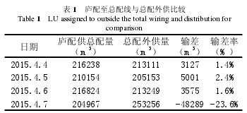 1)孔板裝反引起測量誤差。在孔板閥中安裝孔板時,應保證孔板的安裝方向正確,天然氣從孔板的上端面流向下端面。表3為廬配供總配氣量與總配外供氣量的對比,正常情況下廬配供總配氣量應大于總配外供氣量,如表2中4.4日至4.6日數據。4.6日廬配至總配線孔板裝反,導致4.7日廬配供總配氣量小于總配外供氣量,引起較大誤差。