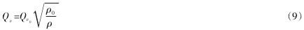 0引言 轉子流量計是常用的節流式流量計之一,具有結構簡單、制造容易、測量范圍寬(量程比可達 10:1)、測量精度較高(誤差±5%左右)、示值直觀、維護方便、壓損小等優點,是現代生活和工業生產中應用廣泛的計量器具。 在計量技術水平日益發展、測量精度需求不斷提高的今天,計量工作者只有全面了解轉子流量計的結構原理、流量計算、量值影響因素與修正方法、以及流量計的選型、安裝要求,才能選出符合需求的計量儀表,實現測量效果。希望本文給計量工作者帶來些許幫助。 1轉子流量計結構原理簡析 1.1 結構分析 轉子流量計由兩部件組成, 一是從下向上逐漸擴張的錐形管,二是置于錐形管中,可沿管中心線上下移動、密度比流體稍大的轉子(圖1 轉子流量計原理圖)。 錐形管由玻璃、塑料或金屬材質制成。 玻璃或塑料材質的錐形管上刻有流量刻度,透過錐管可看到透明流體中轉子的位置及所對應的刻度值; 金屬材質錐形管中轉子位置通過磁性耦合等方式傳遞管外,在面板上顯示量值。 1.2 工作原理 當測量流體的流量時,流體從錐形管下端流入沖擊轉子,對它產生一個作用力,力的大小隨流量大小而變化;當流量足夠大時,所產生作用力將轉子托起,使之升高;流體經轉子與錐形管壁間的環形斷面從上端流出。 當流體對轉子的作用力等于轉子重量時,轉子因受力平衡而停留在某一位置;這個位置與流量有相互對應的關系,據此位置,即可求得流量值。 1.3 流量計算 流量計轉子在錐形管中受三個力:重力、動壓力和浮力,三力平衡時,轉子重力=動壓力+浮力。 當流速變大或變小時,轉子將向上或向下移動,流體流動的截面積也發生變化,直至達到平衡時對應的流速,轉子在新的位置上穩定。 因此,轉子穩定時受力關系公式如下: 其中:ρt-轉 子密度 ;ρf- 流 體密度 ;g- 重 力加速度 ;V- 轉 子體積 ;△p-轉子前后壓差;A-轉子最大截面積。 結合公式(1),并參照孔板流量計流量與節流壓差間的關系方程式: 得轉子流量計流量公式: 其中:Qv-流量值;a0-流量系數(與轉子形狀、流體狀態、流量計結構和流體物理性質等因素有關, 只能由實驗來確定);A0-環 隙面積 ,對應于轉子高度 h;近似有:A0=ch;系 數 c 與轉子和錐形管的幾何形狀及尺寸有關;ρt-轉子密度;ρf—流體密度;At-轉子最大截面積。 流量方程式可寫成: 由公式(4)可知,轉子的停浮高度 h 與流量 qv成對應關系;根據高度的不同來標刻流量值,即可在實際應用中即時讀取流量值。 2測量值的流體相關性修正 2.1 測量值修正分析 從式(4)可知,被測流體的密度不同,流量大小與轉子高度之間的對用關系也不同。 因受標定設備的限制,生產廠商不可能對所有流量計都做實液標定,故測量非標定介質時,應對讀出的測量值進行修正,以保證精度。 對于液體,其密度為常數,只需修正被測液體和標定液體不同造成的影響即可;而氣體因具有可壓縮性,還應考慮標定狀態和實際狀態不同時溫度和壓力的影響。 通常,標定狀態默認為:溫度 T=293.16K,絕對壓力 p=101325Pa。根據流量計算公式,進行如下分析: 一方面,設定在標定狀態下,測量標定流體的流量公式為: 式中:Qv0-標定狀態下標定流體的流量示值 ;a0-標定狀態標定流體的流量系數;ρ0-流體在標定狀態下的密度。 另一方面,設定流量計在工作狀態下,測量被測流體的流量公式為: 式中:Qv-工作狀態下被測流體的流量示值;a-工作狀態被測流體的流量系數;ρ-流體在工作狀態下的密度。 由式(5)和式(6)可以看出,在實際工作狀態下,被測流體的實際流量為 qv,但轉子在高度 h 處,轉子流量計的顯示仍然是 qv0。 比較式(5)和式(6),可以得出 Qv和 Qv0之間的關系,即流量修正公式為: 實驗表明,流量系數 a 與雷諾數 Re 和流量計結構有關,當被測流體的黏度與標定流體的黏度相差不大時,或在流量系數 a 為常數的流量范圍內,可不考慮 a 的影響,即可以認為 a=a0,所以(7)式可以簡化為: 若被測流體的黏度相對標定流體的黏度相差較大,則應考慮黏度差異對實際流量系數 a 與標定流量系數 a0間的差異,參照式(8)進行修正或進行實際標定,不能簡單地認為 a=a0。 2.2 流體密度修正 2.2.1 液體流量的測量值修正 流量計對液態類流體的測量示數通常采用水為參照流體,在標定狀態下進行標定。 實際測量非水液體流量時,只需修正被測液體和標定液體(水)之間密度差異而造成的影響,即可按(8)式進行修正換算。此時,ρ0為標定流體的密度,ρ 為被測流體的密度。 2.2.2 氣體流量的測量值修正 流量計對氣態類流體的測量示數采用空氣為參照物,在標定狀態下進行標定。由于氣體的密度受溫度、壓力變化的影響較大,故不僅應隨著被測氣體與標定氣體之間的密度不同進行換算,而且要隨工作狀態時溫度和壓力與標定狀態的不同進行修正換算。為簡化氣體流量值的修正,一般可以忽略黏度對流量系數的影響,而且,對于氣體來說,由于 ρt>>ρ0,ρt>>ρ,則由(8)式可得: 測量非標定狀態下的空氣流量時,可直接使用式(9)計算。但 ρ 為被測氣體在工作狀態下的密度,實際使用起來較為不便。為此,可以將流體密度和所處狀態分開修正,即先在標定狀態下對被測流體的密度進行修正,然后再進行狀態修正。 最后的修正公式為: 其中:p0-標定狀態下的絕對壓力;p-工作狀態下的絕對壓力 ;T0-標定狀態下的絕對溫度;T-工作狀態下的絕對溫度;ρ′-被測氣體在標定狀態下的