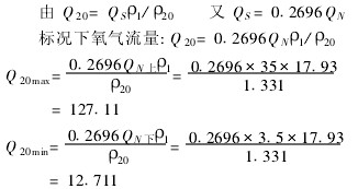 其流量上限FH應為金屬轉子流量計刻度上限所對應的標準狀態下的氧氣流量,因為金屬轉子流量計的刻度為標準狀態下空氣標注,所以必須將其轉換為標準狀態下氧氣流量。