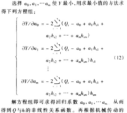 由于每臺流量計的錐管和浮子的加工誤差不可能一致,每臺金屬管轉子流量計的流量值p和浮子位移h的作線性關系也不可能一樣,所以在實際制造時流量計的凸輪都要逐臺校驗加工,設口與h的非線性回歸模型為