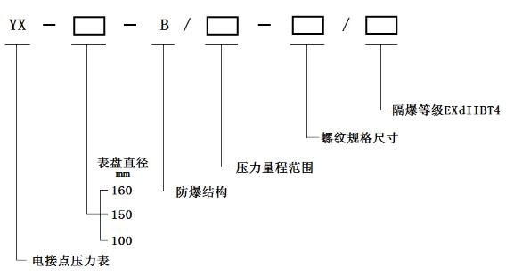YX-160-B防爆電接點壓力表由隔爆外殼、測量系統、電接點組、調節裝置和出線盒等組成。該壓力表的隔爆外殼具有良好的隔爆性能,因此防爆電接點壓力表對在正常工作過程中由于火花或電弧的影響,除了能承受殼體內部的爆炸性氣體混合物在一旦引起爆炸時產生的爆炸壓力外,并能有效地阻止由此產生的熱能向外順利傳播,而只能在殼體內部沿著隔爆接合面的微小縫隙處緩慢地向外擴散。這時,傳至殼體外部的瞬間溫度已降低到爆炸性氣體混合物的燃點溫度以下,故不會導致傳爆。